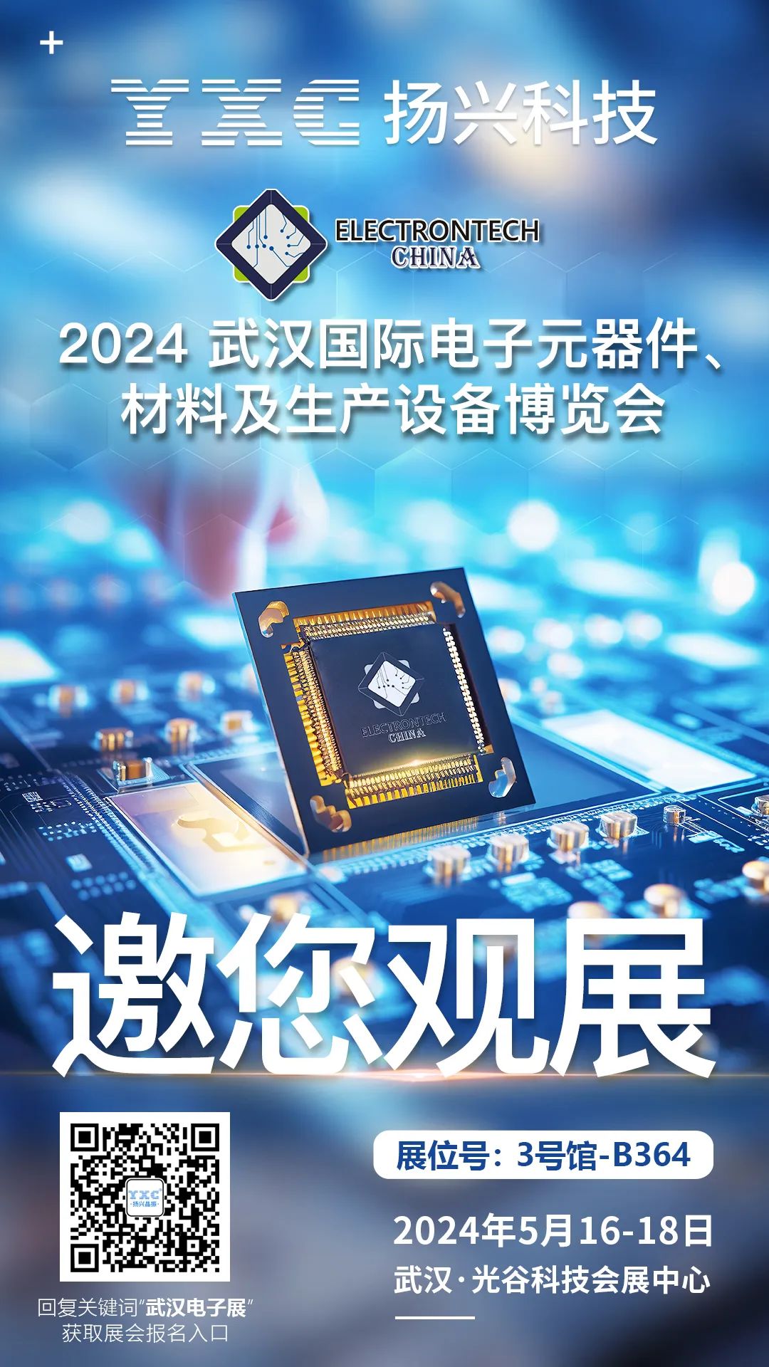 Electrontech China 电子展创办于2016年,已经历经六届,依托迅速发展的中西部电子市场,累计吸引了超过1000家全球领先的行业企业参展,2024年在武汉·中国光谷科技会展中心继续在武汉举办,打造中西部地区一流的电子技术专业展。作为深耕晶振行业30余年的企业,扬兴科技此次与您相约武汉国际电子元器件展,与国内外客户和参展伙伴共话未来商机,现场还有精彩纷呈的抽奖活动,期待大家的到来!