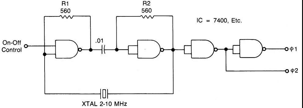 振荡电路可能不在石英晶振的标称频率附近工作,它被称为"不规则振荡",如果C-MOS逆变器不是非缓冲型,可能会发生这种情况。