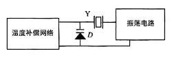 该补偿方式又分模拟式和数字式两种类型。 模拟式间接温度补偿是利用热敏电阻等温度传感元件组成温度-电压变换电路, 并将该电压施加到一支与晶体振子相串接的变容二极管上, 通过晶体振子串联电容量的变化, 对晶体振子的非线性频率漂移进行补偿。 该补偿方式能实现±0.5ppm 的高精度, 但在3V 以下的低电压情况下受到限制。 数字化间接温度补偿是在模拟式补偿电路中的温度—电压变换电路之后再加一级模/数(A/D) 变换器, 将模拟量转换成数字量。 该法可实现自动温度补偿, 使晶体振荡器频率稳定度非常高, 但具体的补偿电路比较复杂, 成本也较高, 只适用于基地站和广播电台等要求高精度化的情况。