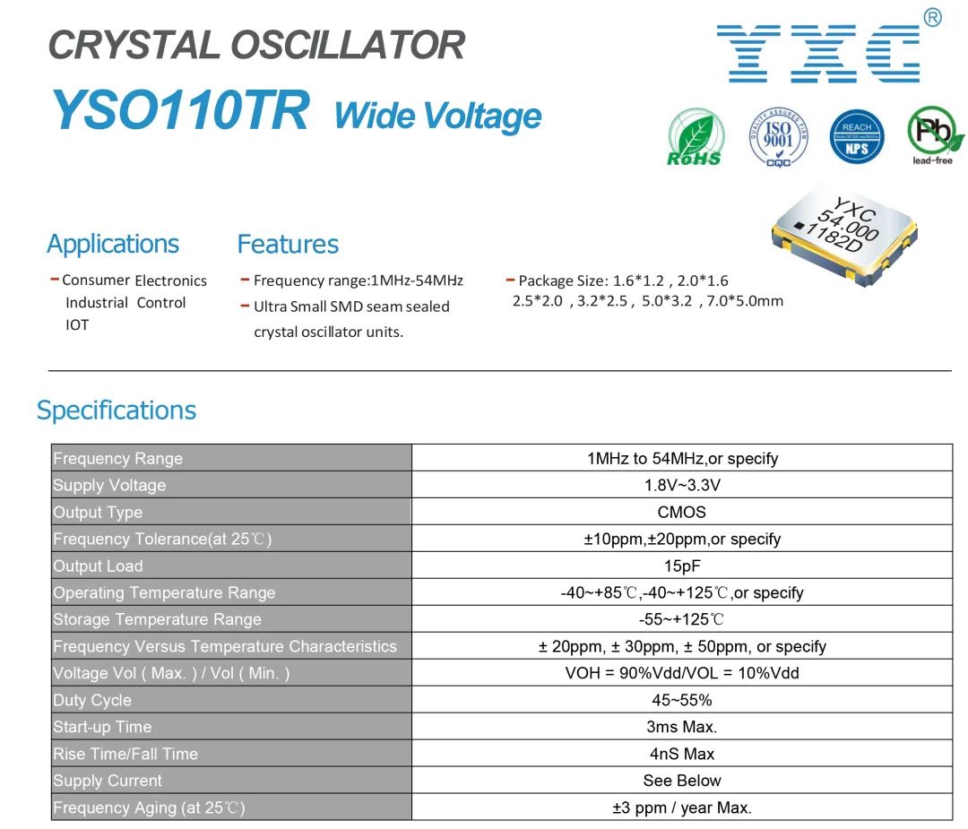 在有源晶振方面,推荐使用YSO110TR(3225),耐高温,可达-40~+125℃汽车级温度且高精度,特别适合光伏逆变器在极为恶劣的环境下使用。