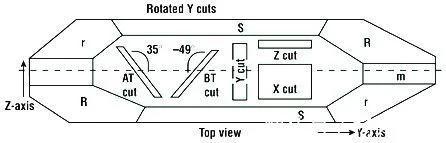 音叉32.768KHZ晶体频率温度曲线为二次抛物线,随着工作温度偏离常温25℃越远,温漂也随之变大,-10℃~+60℃其温漂达到将近50ppm,如按工业级-40℃~+85℃计算,温漂高达151ppm,难以适应工业级工作温度范围的电子产品,对其进行温度补偿也较为困难,因此,市面上针对32.768KHZ的温补晶振很少,且价格极为昂贵。对于一般的消费类电子行业,如需工业级-40℃~+85℃,且温度频差控制在±30ppm以内,使用普通音叉型32.768KHZ晶体,是无法满足要求的。然而,如果能将晶片切型改为AT切的切型,那么工业级温度频差控制在±30ppm以内将不成问题。下面来了解一下AT切32.768KHZ钟振是如何实现的。