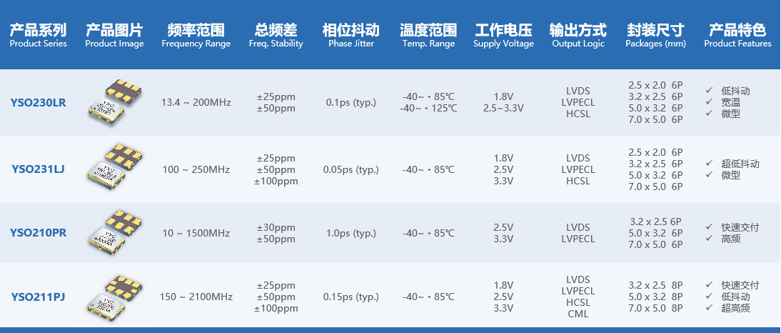 国产晶振原厂扬兴科技提供全面的差分晶振产品系列,为视频处理器提供低抖动、低相噪、高精度的时钟解决方案。针对视频处理器应用,主推产品系列及特色优势如下: