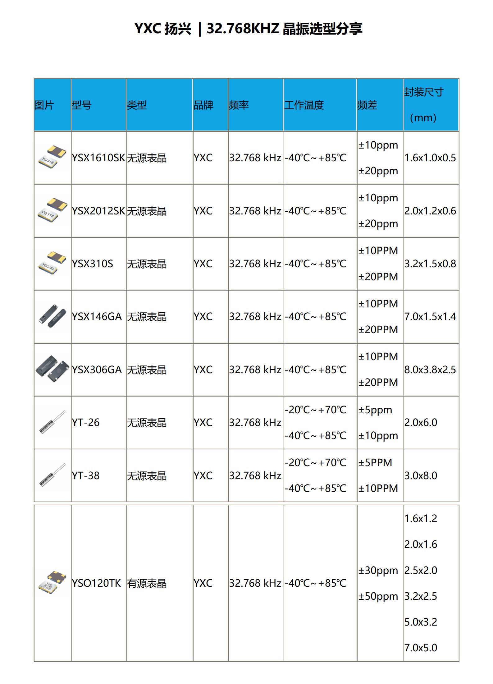 YXC扬兴 | 32.768KHZ晶振选型分享