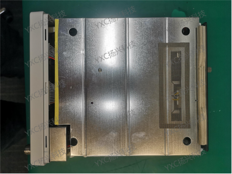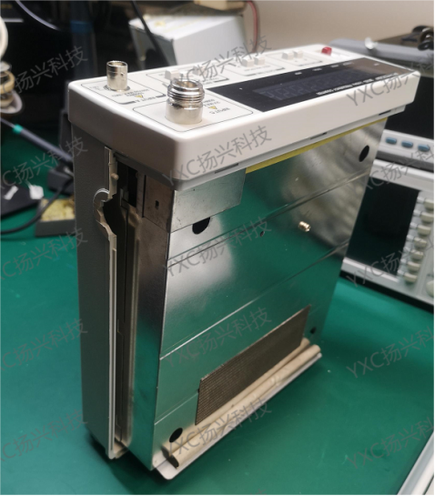 接着把外壳卸下,并把支架取下,此时出现一个金属屏蔽罩(测试仪器对干扰源还是有一定的要求),整个电路板部分包裹在里面。此时拆下1颗屏蔽罩盖板螺丝,取下屏蔽罩,漏出电路板;