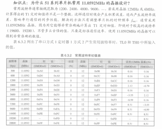 通过查询手册发现支持的频率范围是3MHZ~24MHZ,那实际选择的频率是11.0592MHZ,为什么选择11.0592MHZ呢?(结论如图所示)所以在一些串口通信上经常使用11.0592MHZ晶振来进行设计,来降低误码率,使用的YXC晶振的型号如下:
