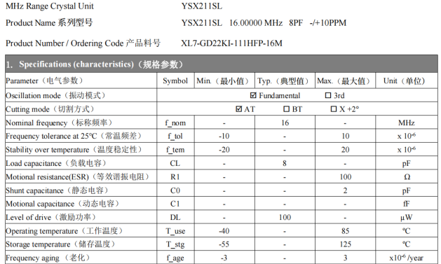 标称频率:该频率特指晶体技术条件中规定的频率,表示为MHz或KHz。