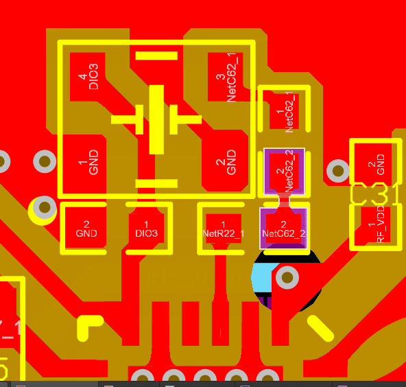 ③若滤波器件放在晶振下方,且滤波电容与匹配电阻未按照信号流向排布,会使滤波器的滤波效果变差。