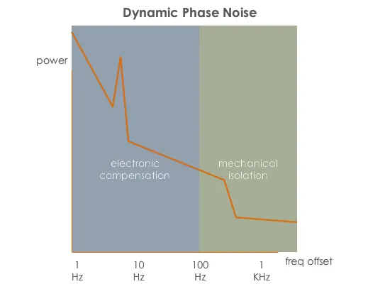 使用的典型补偿方案可以覆盖大约500Hz的振动,而隔离结构以大约120Hz开始衰减。