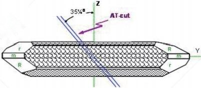 (图5)各种石英切片的频率-温度特性。AT切型是石英器件中最受欢迎的MHz晶体切割。(图6)为+x轴俯视图AT切型方向。