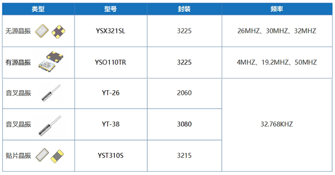 其他产品涉及蓝牙功能方面,例如智能家居、工业控制等。无源晶振常用YSX321SL,3225封装尺寸,26MHz/30MHz/32MHz;有源晶振常用YSO110TR,3225封装尺寸,4MHz/19.2MHz/50MHz。