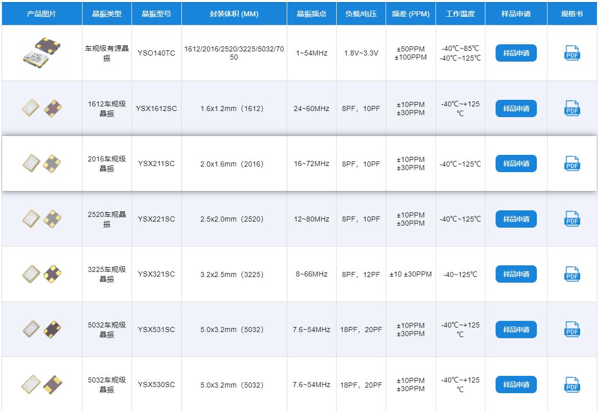 深圳扬兴科技专注晶振领域已36年,研发生产7款不同尺寸的车载晶振,以满足更多汽车领域的需求。YXC车规级晶振,高稳定性、高性能、多种尺寸,符合RoHS标准,绿色环保,通过AEC Q200、IATF16949 技术认证,适合汽车、车载导航设备、安全设备、ADAS、导航仪等领域的应用。