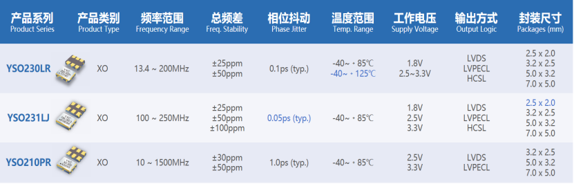 为满足高速数据传输与处理场景日益严格的时序信号需求,YXC推出一系列低抖动、高精度、高频率、微型化、耐高温的差分晶振产品,为相关应用场景提供高度可靠的时钟解决方案。