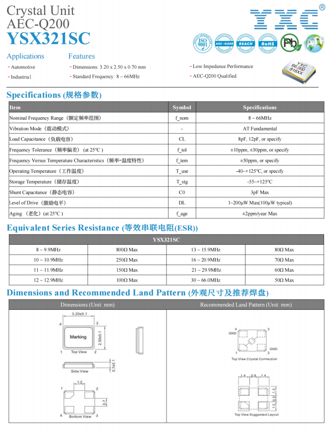 晶振应用分享:YXC车规晶振--车载蓝牙优选