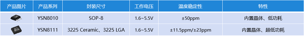 > YXC实时时钟(RTC)产品组合
