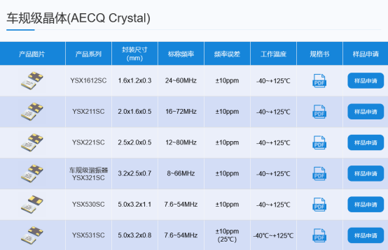 · 车规级晶体:YSX1612SC