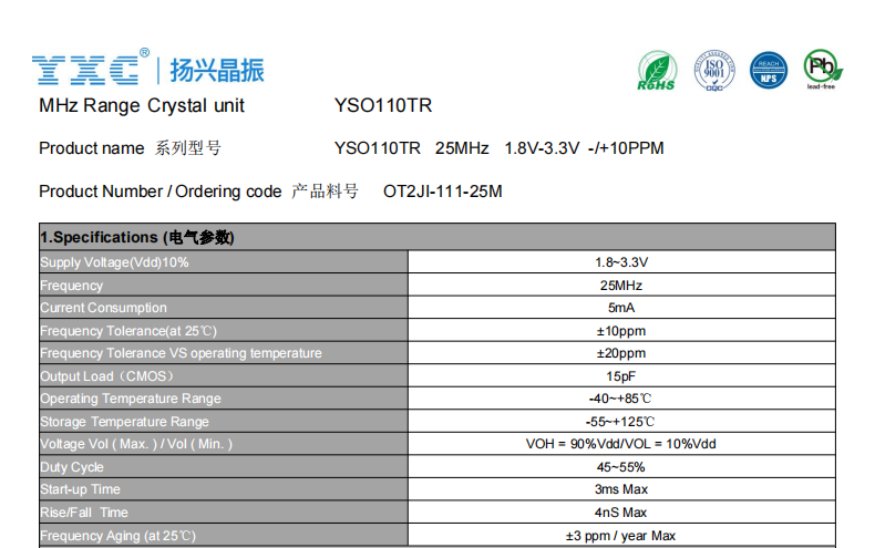 在环境保护方面,YSO110TR系列石英振荡器符合RoHS标准,采用环保材料进行制造,无铅无汞,对环境友好。这一特点进一步彰显了YXC扬兴科技在可持续发展和环境保护方面的责任担当。