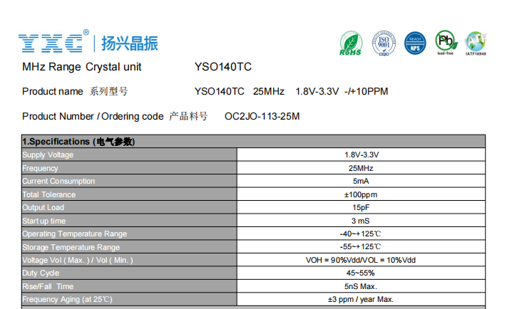 YXC扬兴科技推出石英振荡器YSO140TC提升机载天线性能