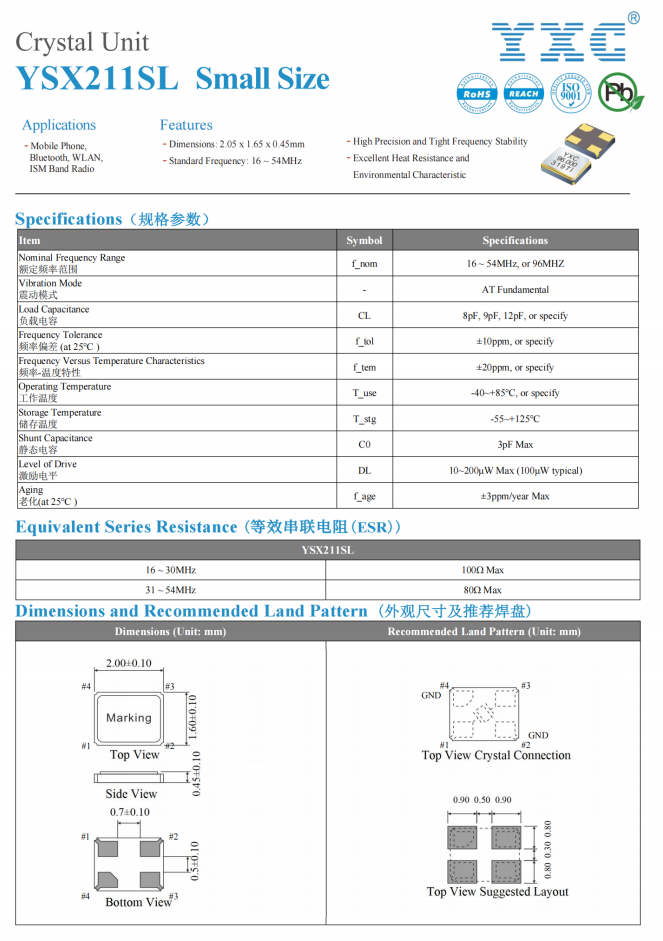 那么,在有限的空间电路板里扬兴推荐尺寸2016和1612的贴片晶振,具有小型化,高精度,低功耗,低老化特点;常见频率有:16MHZ、24MHZ、24.576MHZ、26MHZ、32MHZ、40MHZ;