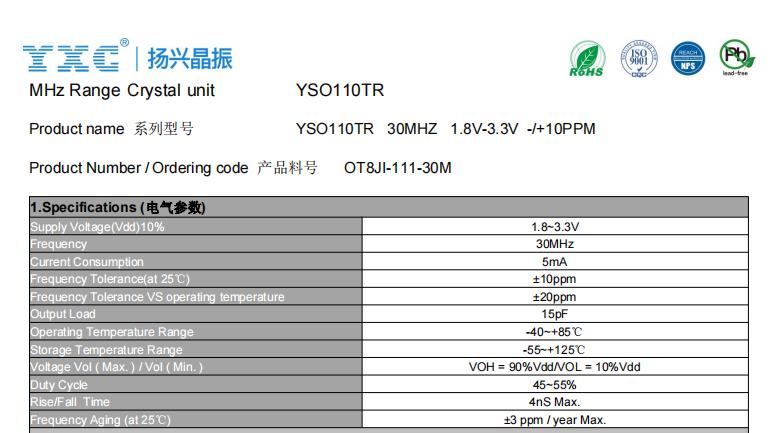 此外,YSO110TR具有宽电压范围,可适应不同的电路设计和电源要求。电压范围为1.8V至3.3V,兼容性强,可以灵活满足UPS系统的电路设计需求。无论是现有的UPS系统升级还是新的UPS产品设计,YSO110TR都能够提供可靠且稳定的时钟信号支持。