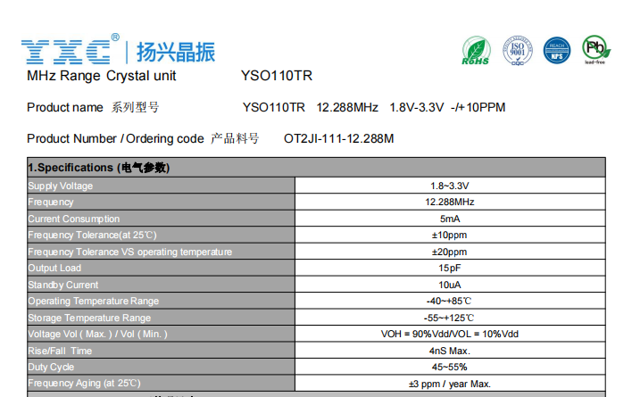 除了高稳定性和紧凑的尺寸,YSO110TR还具备广泛的工作温度范围,可在-40℃至85℃的环境下正常工作。这使得它适应了音频调节器在不同工作环境下的需求,确保系统在各种温度条件下的稳定性和可靠性。