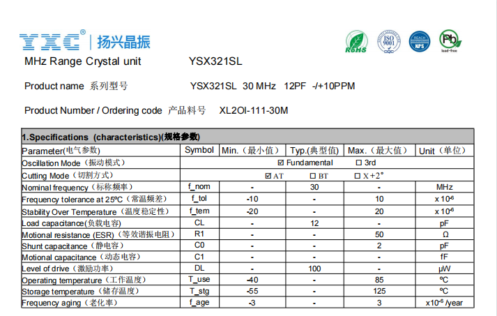 值得一提的是,YSX321SL石英谐振器符合RoHS标准,并且无铅,具备环保特性。在追求高性能的同时,扬兴科技注重产品的可持续发展,致力于为客户提供环境友好型的解决方案。