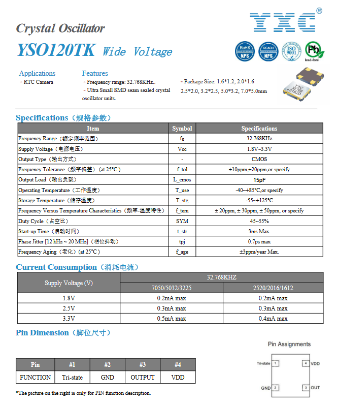 采用3225 4P主流封装尺寸,小型化的设计使其在汽车内部布局更加灵活。无论是嵌入式控制器还是车载通信模块,YSO120TK都能为其提供可靠的时钟源,为手机车载互联的顺畅体验提供强有力的支持。