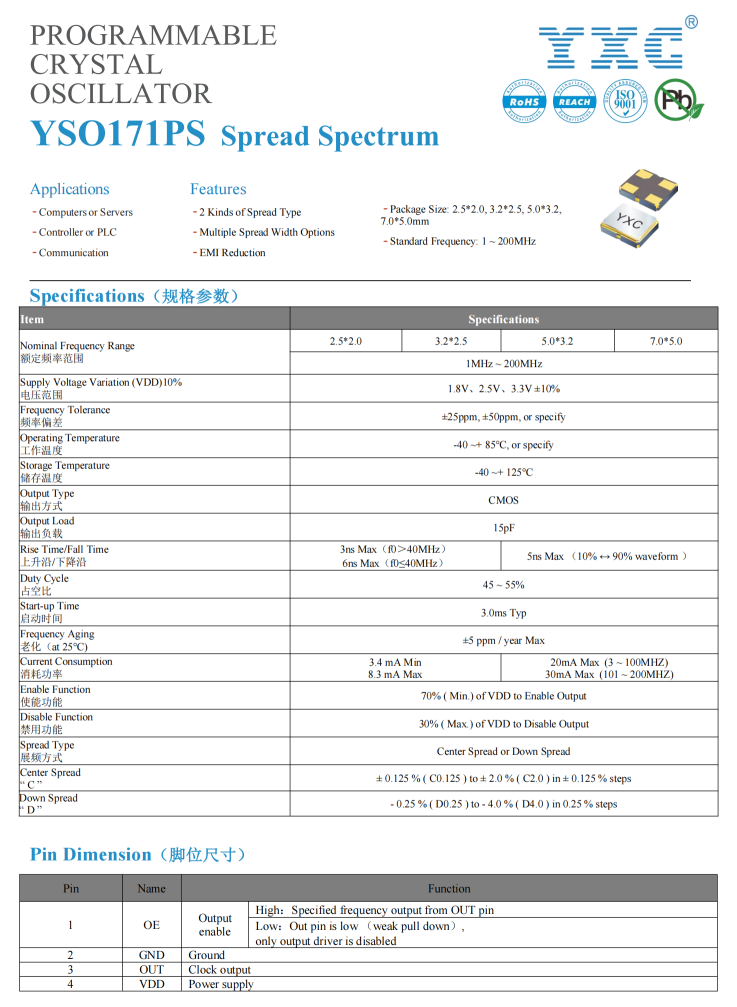 YXC晶振YSO110TR系列,频率为8MHz,总频差±30PPM,以下为YSO110TR系列规格书。