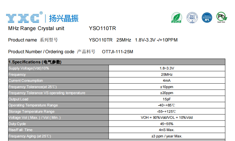 此外,YSO110TR采用小尺寸封装,尺寸为3225,有效节约了电路板空间,使得3D打印机的设计更加紧凑和高效。