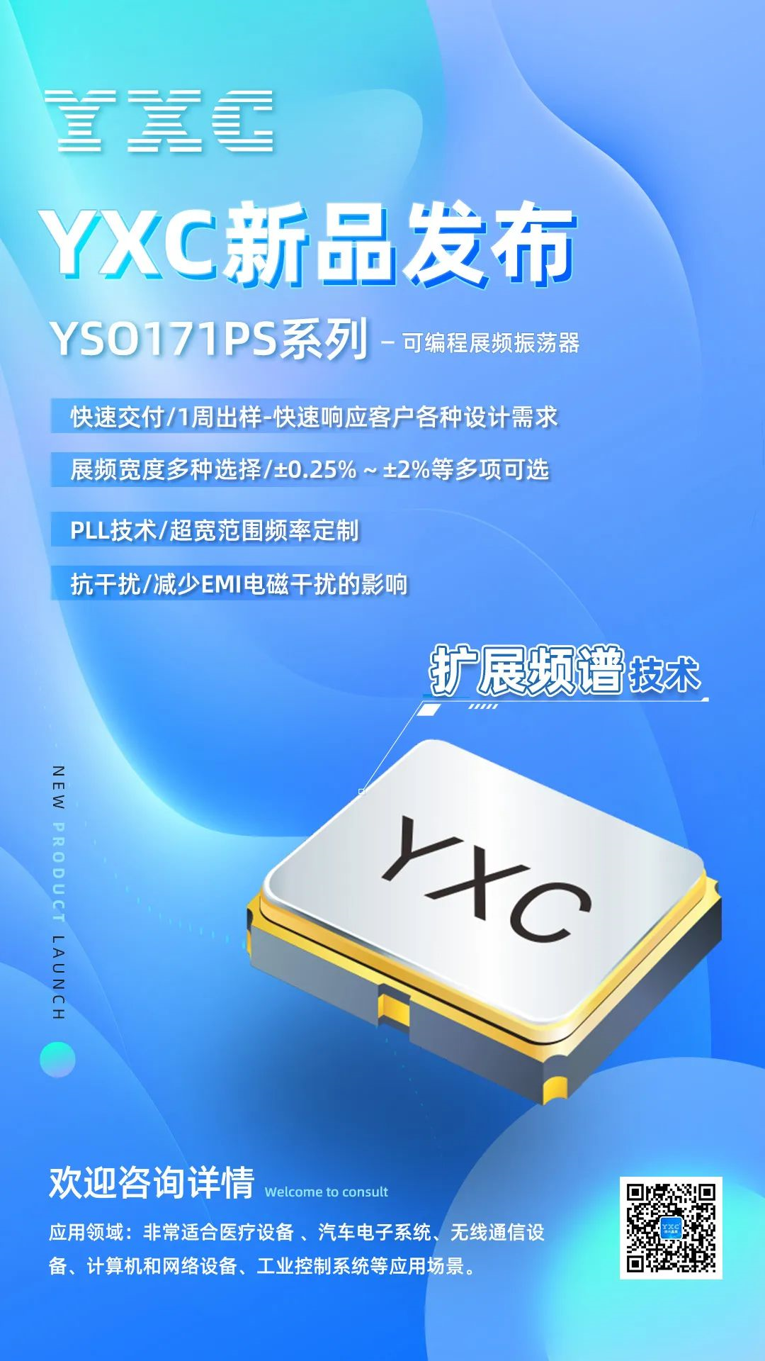 YXC晶振特别推出可编程展频振荡器YSO171PS系列: