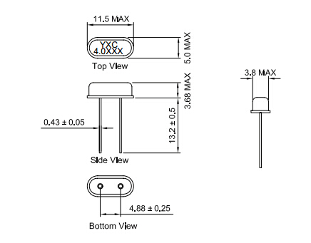 初步了解了HC-49S的封装形式,相关其他参数也简单的说明一下,该产品的频率范围一般在3.579MHZ~54MHZ,体积11.5*3.68mm,广泛运用于读卡器、安防、路由器、交换机封常用设备。