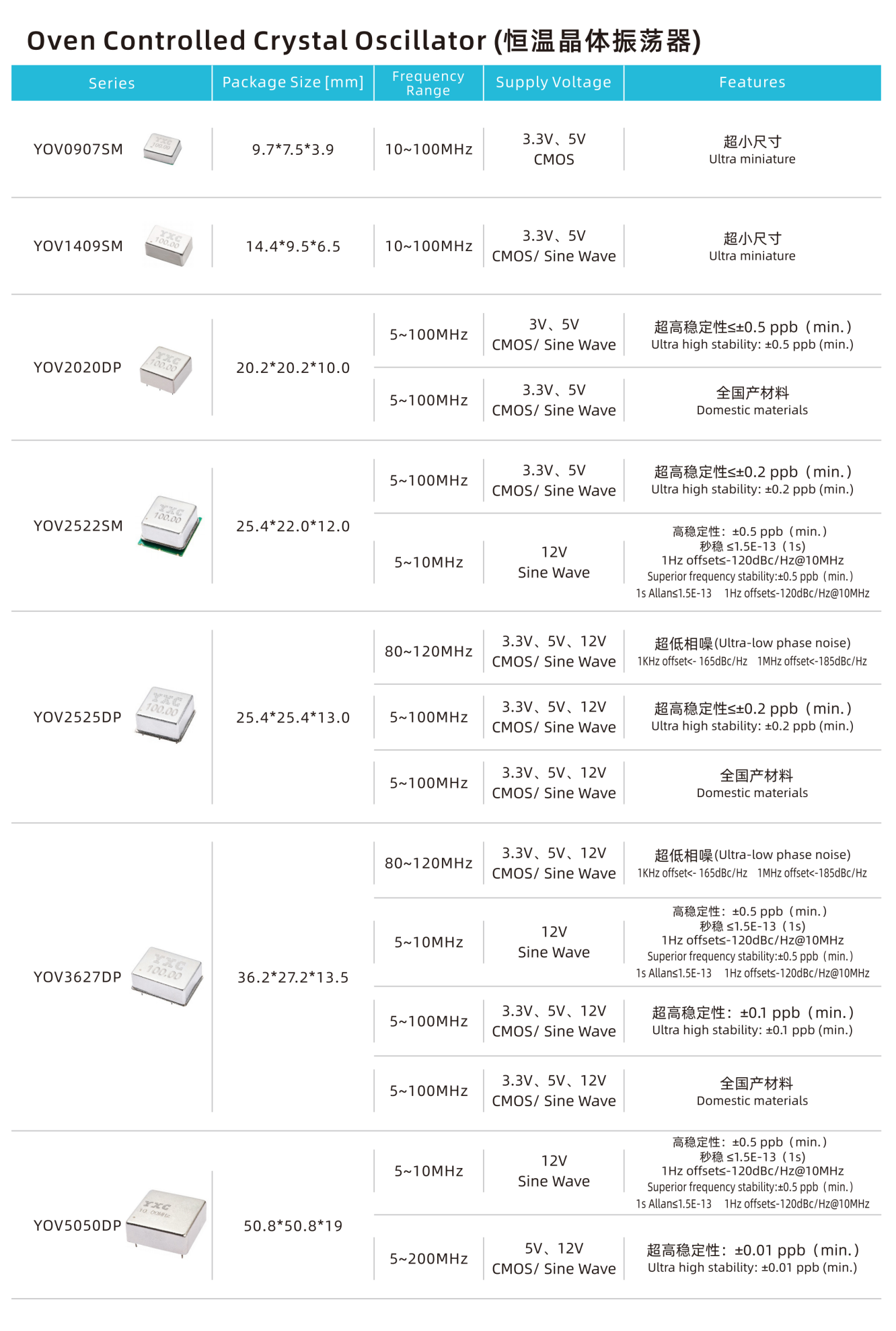 · 可提供国产化材料恒温晶振(OCXO),自主可控