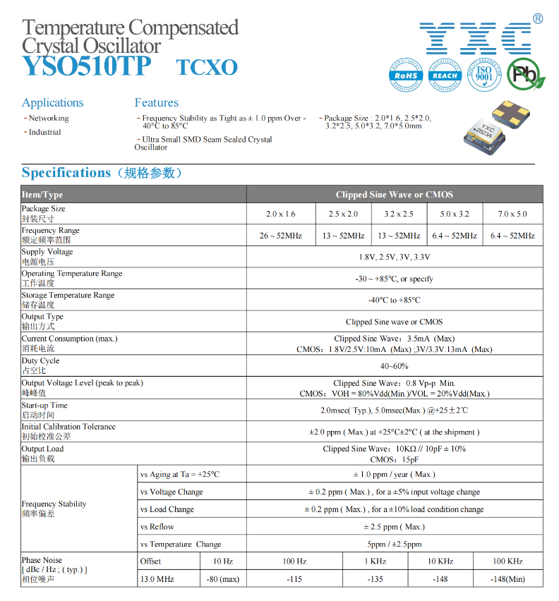 Ø YXC提供TCXO晶振选型指南,助您精准定位产品设计——YSO510TP系列