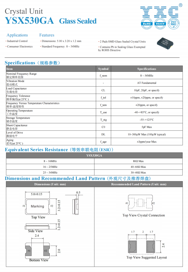 除了频率控制的精度,YSX530GA陶瓷晶体还具备优异的环境适应性。它采用2P 5032封装,体积小巧,便于安装和集成到充电枪中,为充电设备的设计和布局提供了便利。同时,YSX530GA陶瓷晶体具有工业级的工作温度范围,能够在-40~85℃的恶劣环境下稳定工作,具备良好的耐环境特性,适应各种复杂的充电环境。