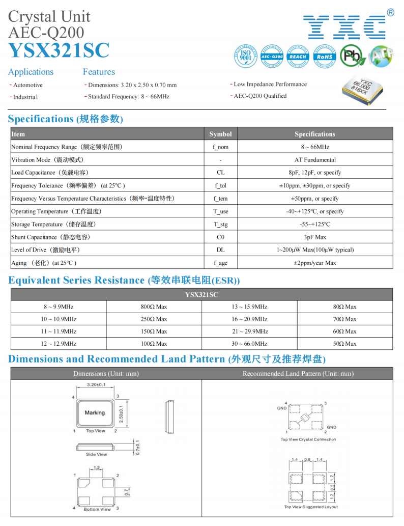 YXC晶振YSX321SC系列,频率为24MHz,总频差±80PPM,以下为YSX321SC系列规格书。